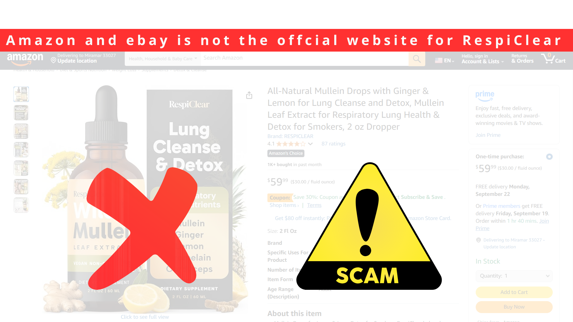 We strongly advise against purchasing RespiClear from Amazon, Walmart, eBay, or unauthorized retailers, as these versions may contain incorrect or unsafe ingredients, putting your health at serious risk.